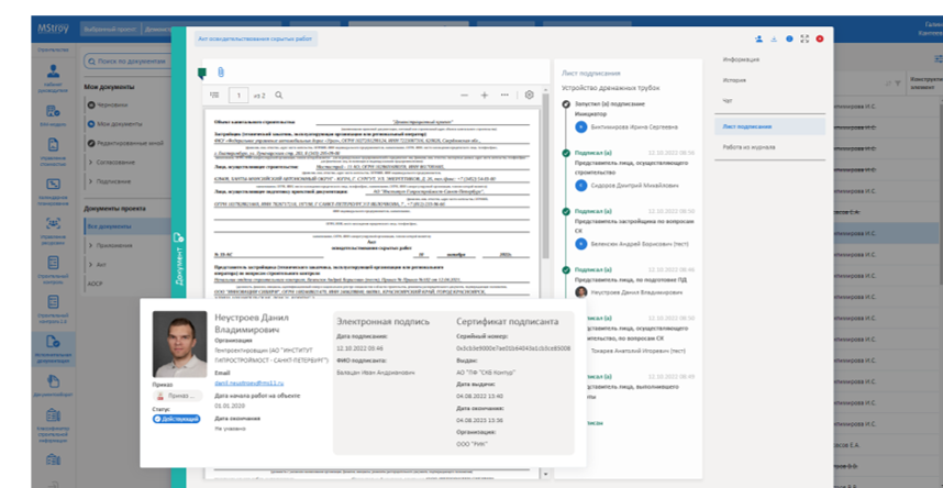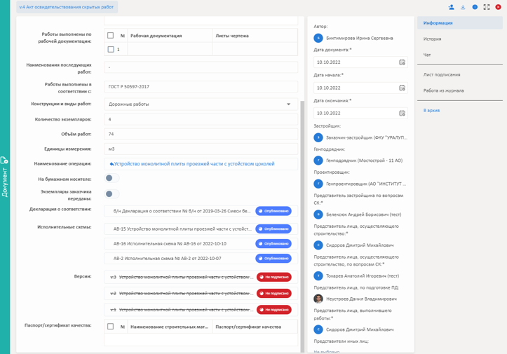Подписание АОСР уполномоченными представителями с помощью ЭЦП; Контроль версионности и замечаний к каждому документу
