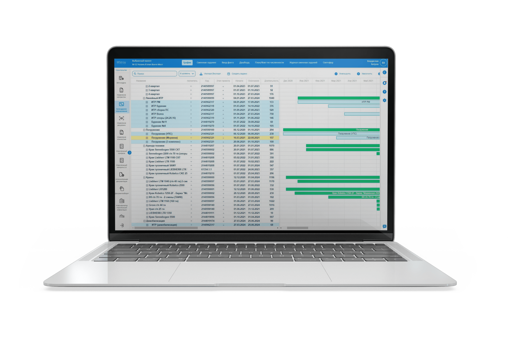 Система управления машинами и механизмами. График потребности машин и автоматический учет по видам работ.